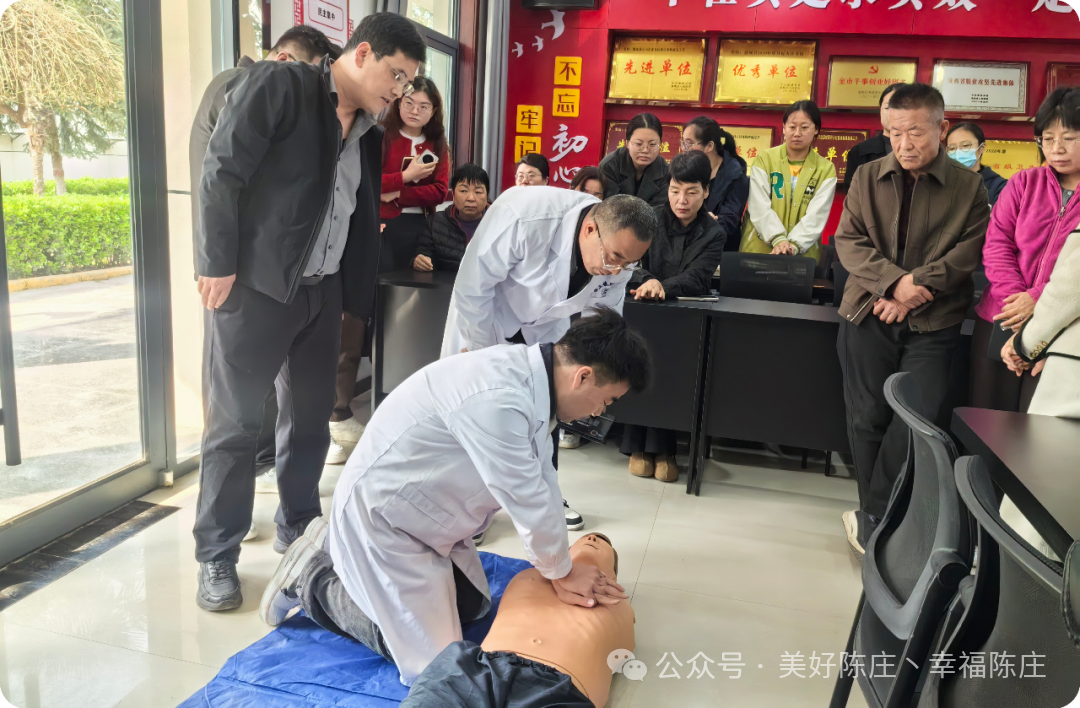 此次培训邀请陈庄镇卫生院专业医师授课,采用“理论精讲+实操演示+互动答疑”的多元教学模式,为参会人员带来一堂实用、生动的急救知识课程。理论授课环节,医师通过PPT演示、典型案例剖析,系统讲解胸痛的核心认知,明确胸痛是身体发出的危险信号,重点讲解急性高危胸痛的辨别方法,强调把握“黄金急救时间”的重要性,同时围绕健康生活方式,从戒烟限酒、控制体重、定期体检等方面给出具体指导,引导干部树立“早预防、早识别、早处置”的健康理念。实操演练环节,医护人员现场演示心肺复苏、海姆立克急救法的操作流程及注意事项,利用模拟人手把手指导干部实操,及时纠正动作偏差,并耐心解答干部提出的急救误区、疾病预防等相关问题,实现理论与实操的深度融合。