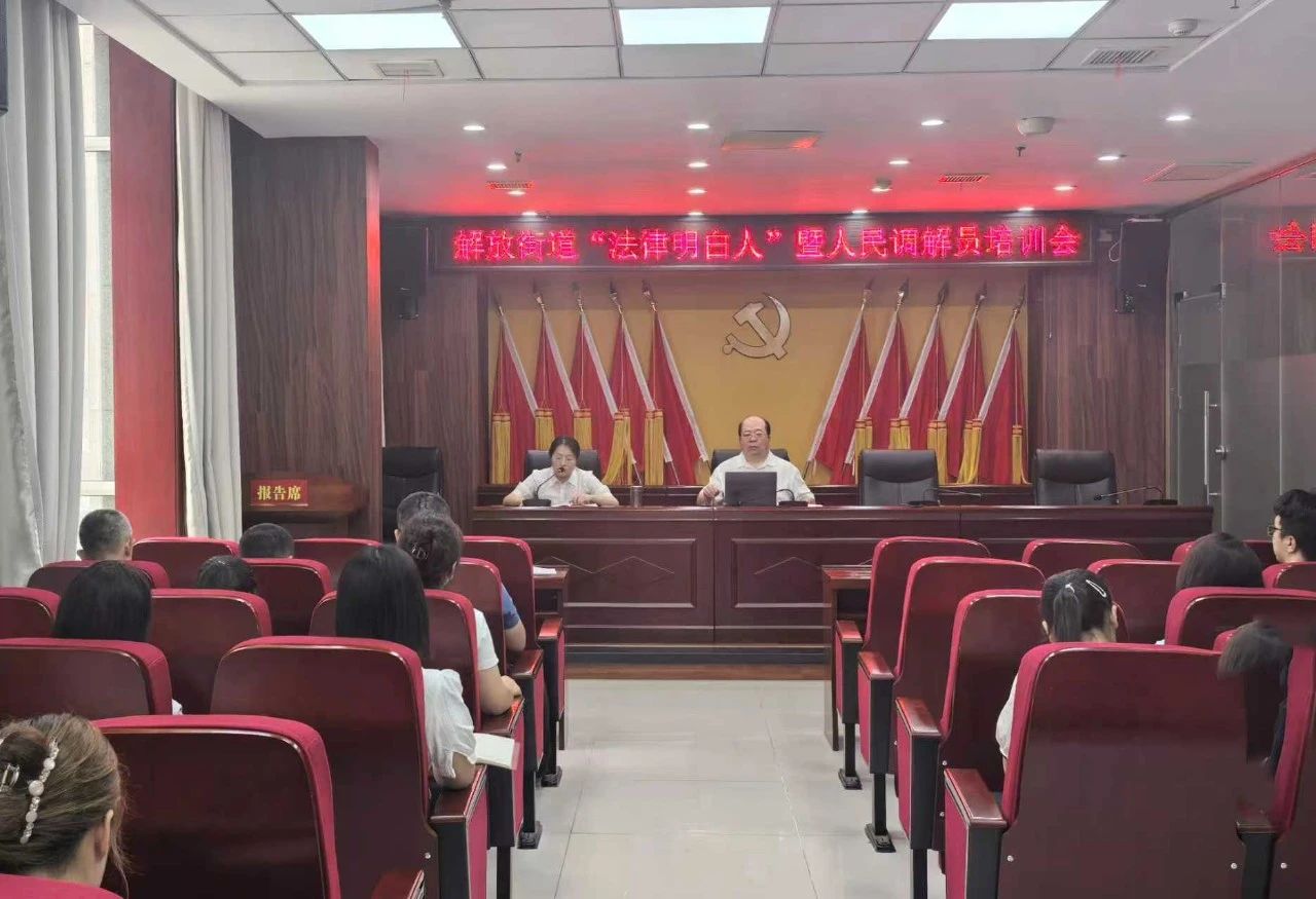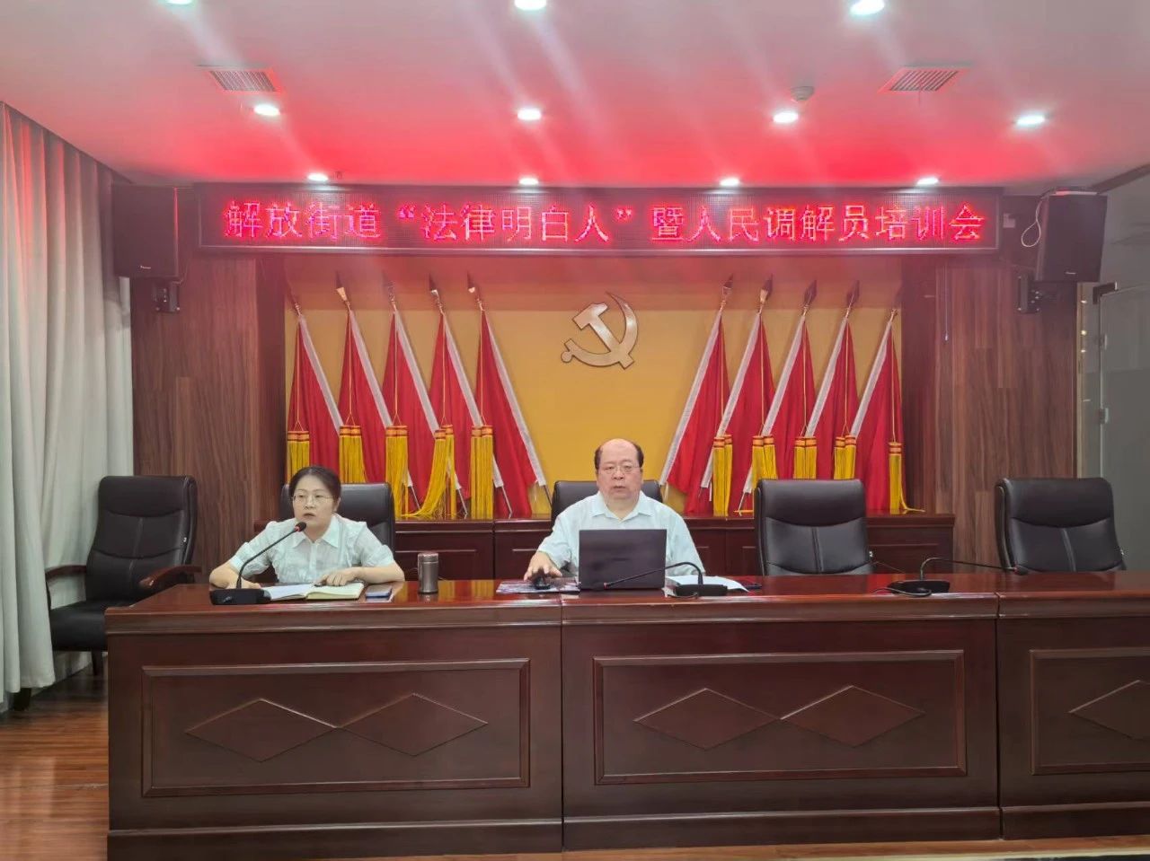 为进一步提升辖区“法律明白人”和人民调解员的业务素养,夯实基层法治建设根基,8月5日上午,解放街道邀请渭南市政协委员、陕西赛高律师事务所主任、解放街道办法律顾问赵晓刚开展《民法典》民间借贷及《人民调解法》专题培训,街道党工委副书记弋伟莉出席并讲话,辖区各社区法律明白人、人民调解员参加培训。