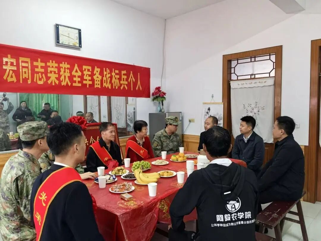 9月18日,部队官兵代表、县人武部、县退役军人事务局联合两宜镇祝贺岳智宏同志荣获“全军备战标兵个人”并开展送喜报活动。