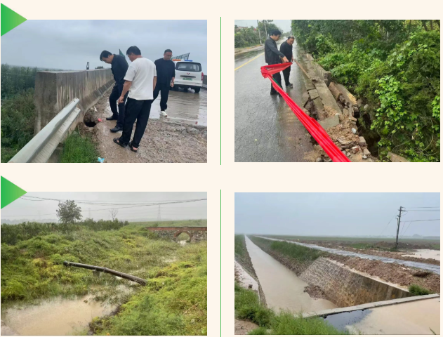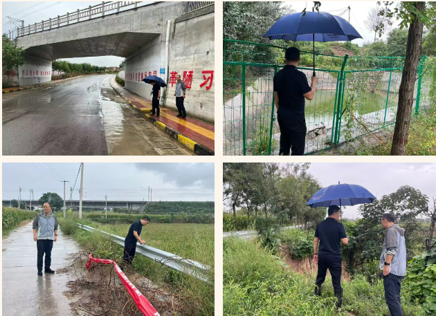 一线排查“问诊”,筑牢设施安全防线。“堤坝有没有裂缝?排水口通不通畅?”荆姚镇领导干部冒雨前行,沿着涝池岸边、排碱渠渠堤、道路安全隐患逐项排查。他们弯腰查看涝池有无渗漏、坍塌风险,查看道路塌陷处是否影响通行,查看渠道内是否有堵塞的杂草、淤泥,对发现的轻微淤积、小型破损等问题现场整改;对需专业处置的隐患点,详细记录隐患位置、隐患类型,第一时间上报并设置警示标志,安排专人实时监测。通过拉网式排查,确保每一处都“健康运行”,从源头防范风险。