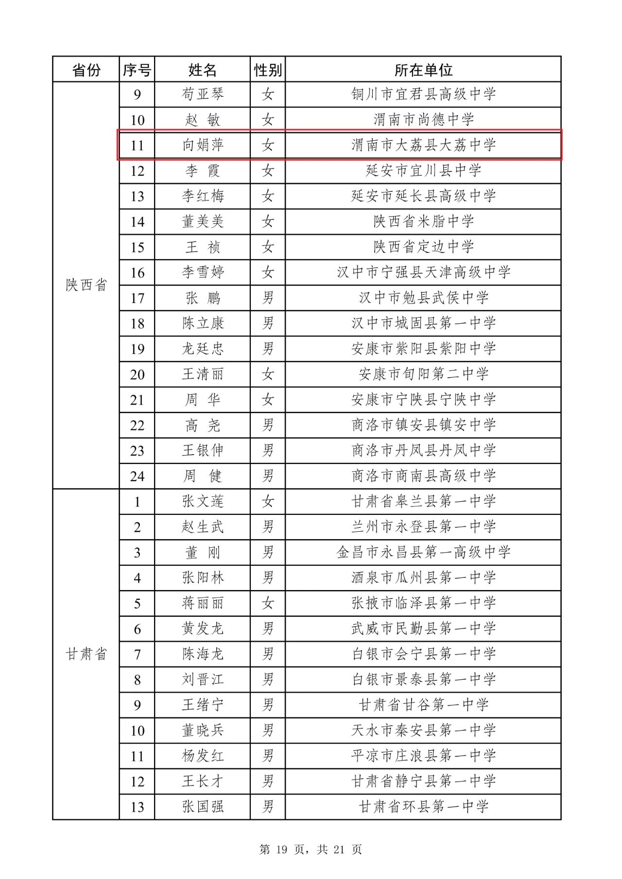 近日,全国县域普通高中头雁教师岗位计划人选揭晓,陕西省共有24名教师入选,其中渭南市2名,我县大荔中学化学教师向娟萍凭借扎实的专业素养、突出的教学能力和卓越的育人成效,从全国众多优秀教师中脱颖而出,成为全国首批600名“头雁教师”之一。
