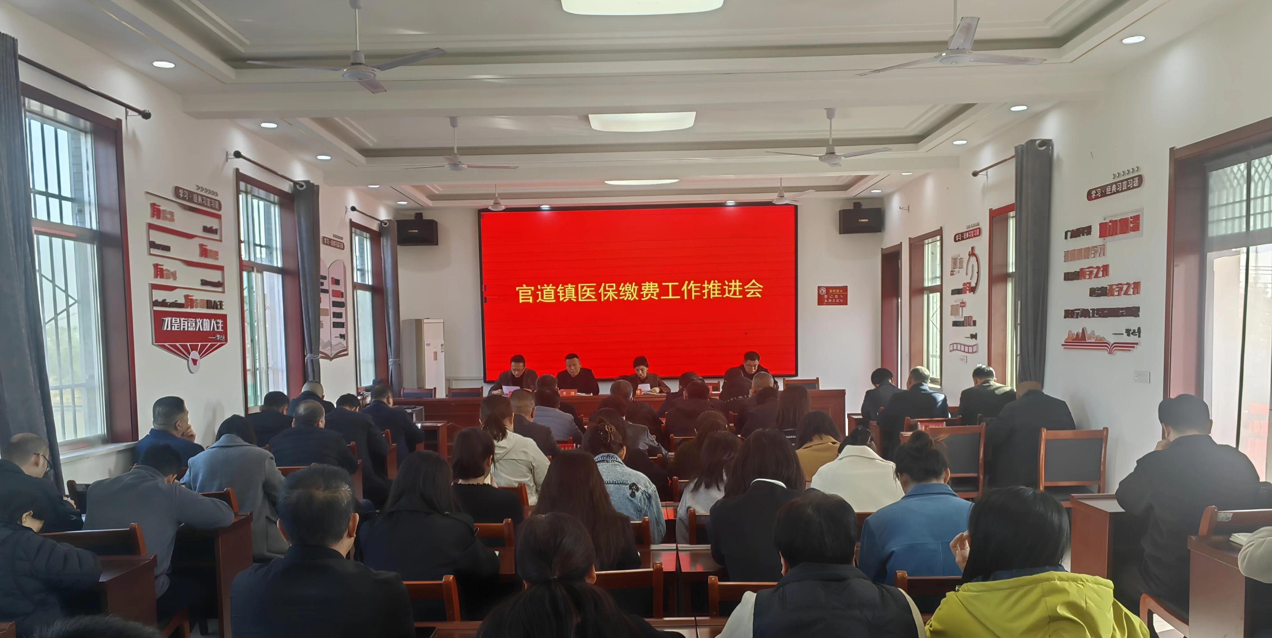 >>>医保惠民暖人心,参保缴费正当时。为全面扎实推进2026年度城乡居民基本医疗保险征缴工作,确保惠民政策落地见效,11月13日,官道镇召开城乡居民医保参保缴费工作推进会,对全镇医保缴费工作进一步安排部署。全体领导及机关干部、各村书记参加会议。会议要求,全镇上下要提高政治站位,切实增强工作责任感和紧迫感,进一步明确目标任务,细化工作措施,确保思想认识到位、组织动员到位、政策执行到位、责任落实到位;要紧扣2026年度医保缴费工作时间节点,严格按照规定的参保范围、缴费标准、征缴时限和工作要求,建立健全工作推进机制;要强化统筹协调,坚持目标导向,做到精准发动、精准施策,全力推进征缴工作,确保实现“应缴尽缴、不漏一人”的工作目标。会议强调,各村要通过入户走访、悬挂横幅、发放宣传资料等方式,广泛宣传医保政策的新变化、缴费标准、缴费方式和惠民成效,切实提高群众政策知晓率和参保积极性;要聚焦特殊群体需求,充分发挥网格化管理服务机制作用,为老年人、残疾人等群体提供上门收缴、手机代缴等服务;要大力推广微信、支付宝、职工医保账户代缴等线上缴费渠道,积极引导群众通过“线上办”实现便捷缴费,真正实现“让数据多跑路,群众少跑腿”,全面提升服务效率和群众满意度,确保2026年度城乡居民基本医疗保险征缴工作圆满完成。